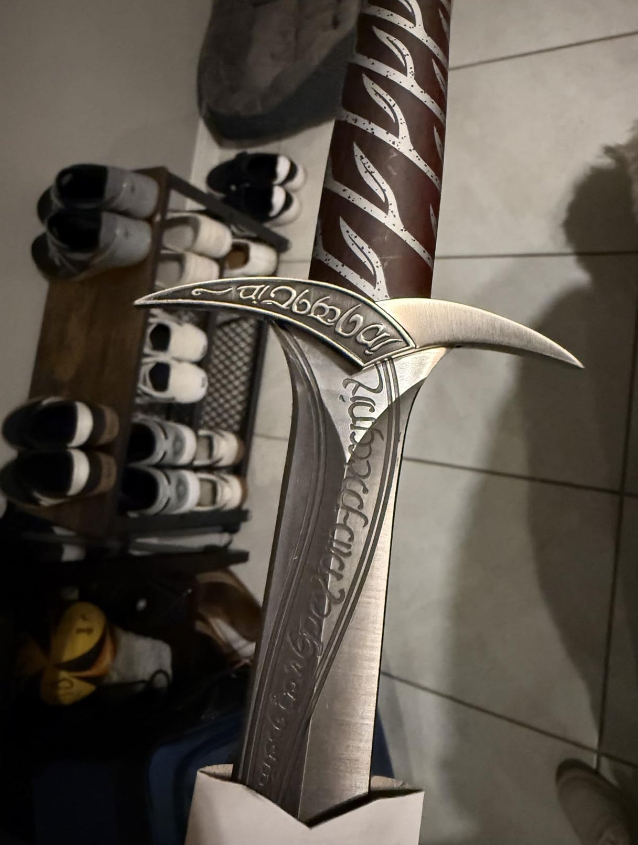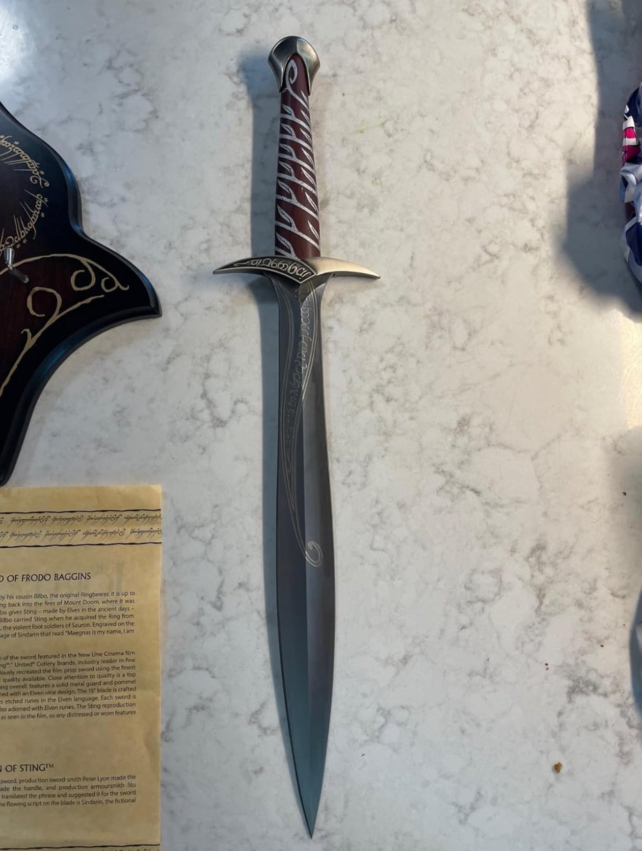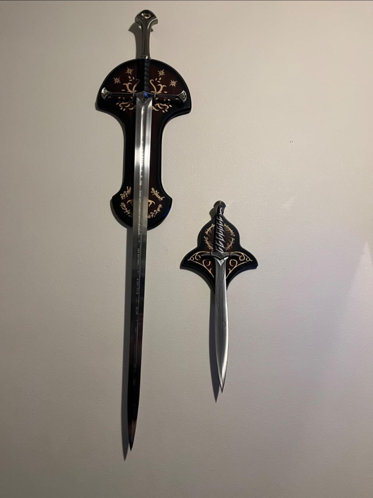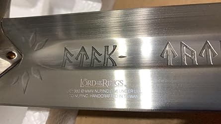 This sword is actually so accurate, the elven scripture is so detailed. the weight, the size. everything about this is perfect. Truly thank you. Going on my collection.
